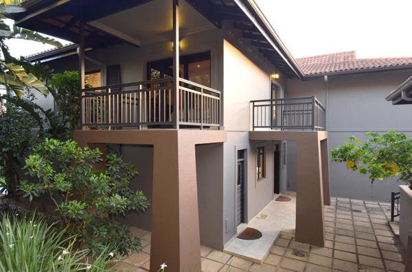 PERFECT LOCK UP AND GO IN QUIET COMPLEX. If lock and go is what you are looking for, look no further than Amabalengwe, a quiet complex with only four units. Easy access into Yellowood Drive, both close to north and south gate. From the double garage you walk out onto a paved courtyard and down into the unit. There are two entrances as well as expansive doors which open out onto a landscaped garden. All bedrooms are upstairs and they are perfectly sized with the main bedroom having an en suite bathroom as well as a balcony with great views.