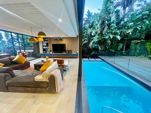 The seamless fusion of indoor and outdoor living defines this home, with stack-away floor-to-ceiling doors opening up the expansive open-plan living spaces to charming patios, a serene pool area, and a secluded, private garden. The heart of the home, a stunning designer kitchen, beckons with its modern elegance and easy flow into the entertainment areas.