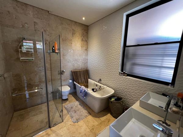 Featuring three air-conditioned bedrooms and a guest bathroom, each with sophisticated bathrooms boasting upmarket finishes, this home exudes luxury and comfort. Residents enjoy the convenience of a single-level layout, direct access from the garage into the house, and a 3Kva inverter for uninterrupted power supply.