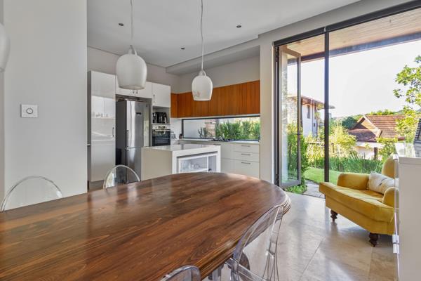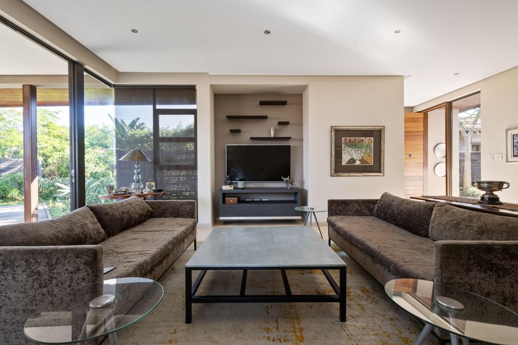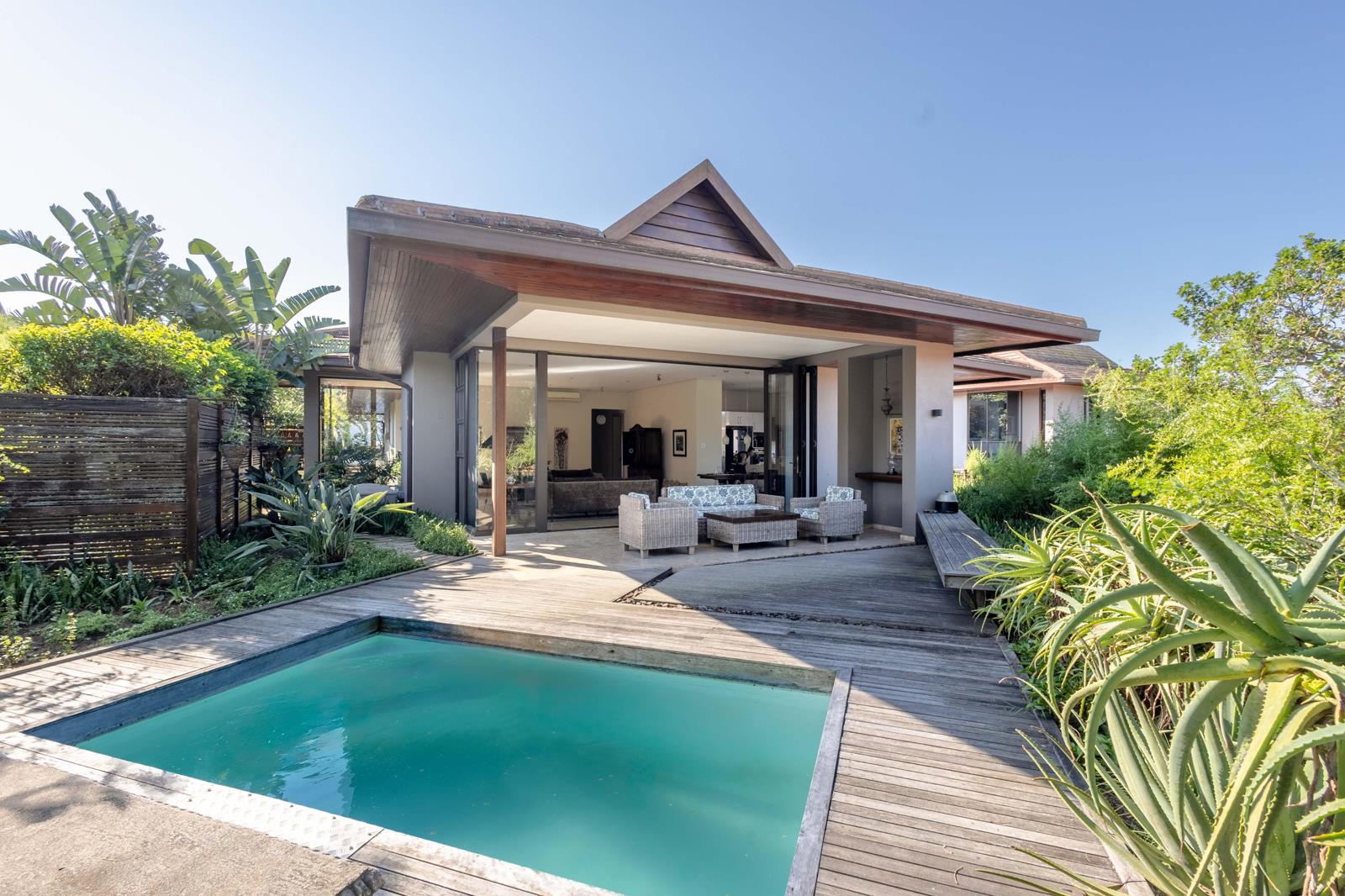 Modern level home situated in Zimbali Coastal Estate. This level home features high ceilings, an open plan living space, dining area, modern kitchen and three en-suite bedrooms. On entrance is the living room which opens up through folding doors to the covered entertainment area overlooking the pool and garden, giving the home an indoor/outdoor feel. The kitchen features a centre island, gas hob and eye level oven.