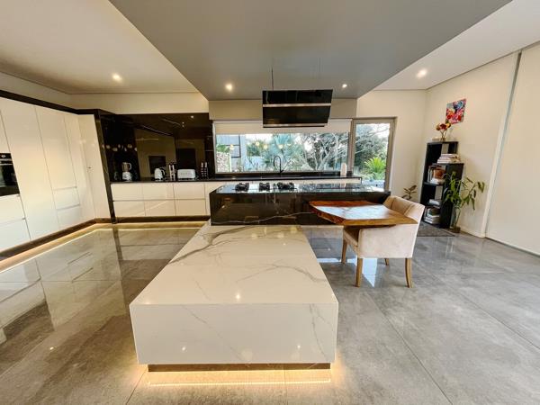 The villa features an oversized games room, ideal for family gatherings, and numerous additional spaces throughout the property. A self-contained flatlet with a private entrance and parking offers flexibility for guests or extended family, while the large additional space can serve as a sixth suite or a spacious home office, catering to various needs.