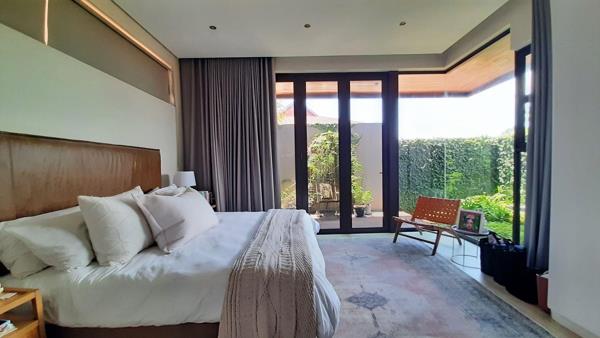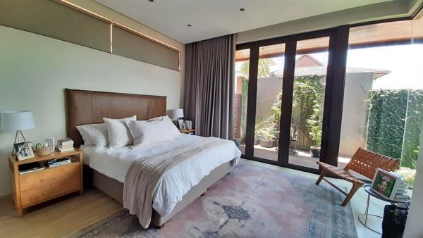 The main bedroom, a true private sanctuary, opens up to a meticulously manicured garden that mirrors the tranquillity of Zimbali Estate. All three bedrooms offer en-suite luxury, providing the utmost comfort and privacy.