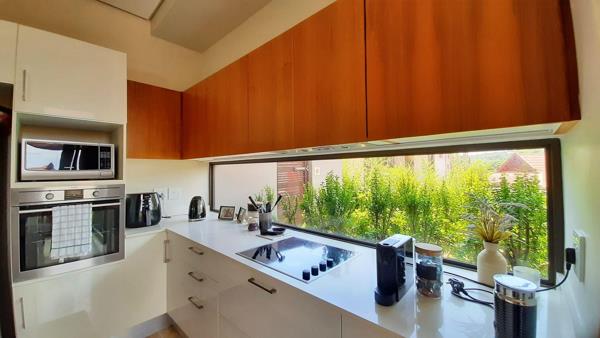 Discover culinary delights in the well-appointed kitchen, basking in the glow of natural light streaming through its expansive window. The lofty ceilings, adorned with tasteful bulkheads, add a touch of grandeur to the open-plan living spaces. Transition seamlessly to the outdoor oasis a charming deck overlooking a pristine swimming pool, creating an idyllic setting for social gatherings and entertaining.