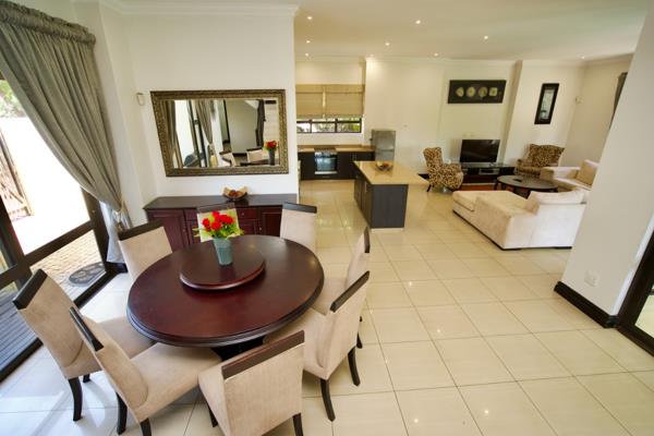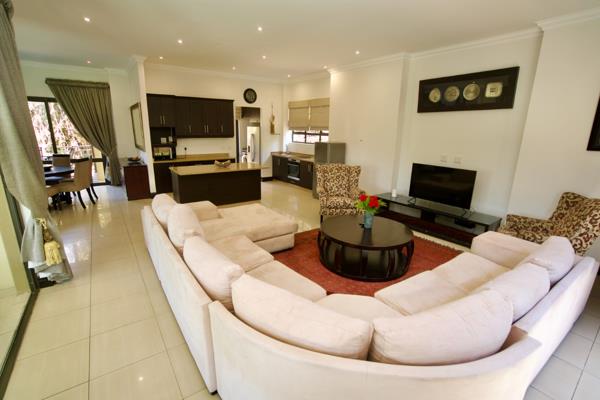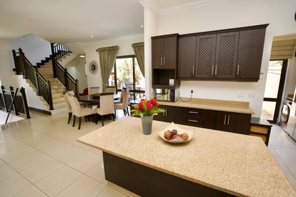 As you step through the impressive double-volume entrance, a grand staircase leads you to the heart of the homean open-plan dining, kitchen, and living area designed for effortless entertaining. The dining space extends onto a private deck, while the living area opens on both sidesone leading to an entertainment haven featuring a built-in braai and splash pool, and the other to a serene deck with a jacuzzi. A guest toilet and a ensuite bedroom complete this level.