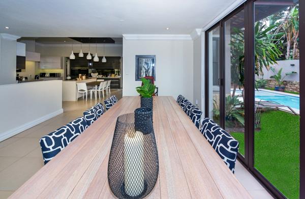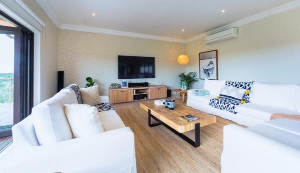 This beautiful modern home is located on an elevated site, with expansive views across the estate and golf course, to the ultimate backdrop of the beautiful blue Indian Ocean.
