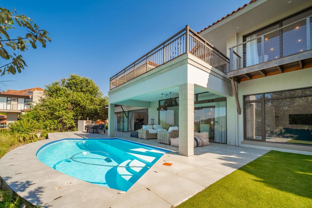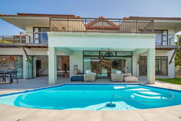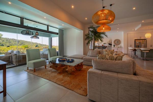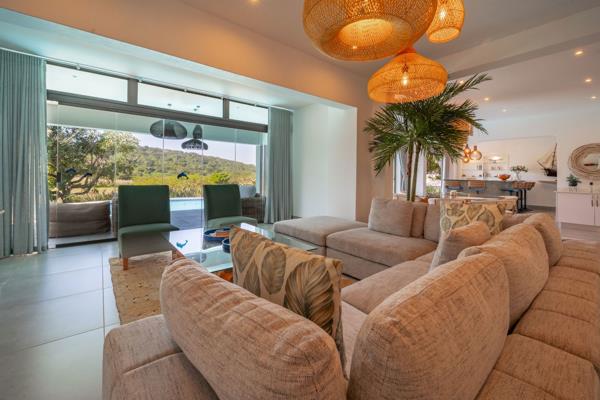 The expansive entertainment areas flow effortlessly through sleek stackable glass doors onto a generous deck and sparkling swimming pool, all perfectly framed by breathtaking, uninterrupted views. A stepless entrance leads into a welcoming space that includes a guest bedroom on the main level, making the home wonderfully accessible.