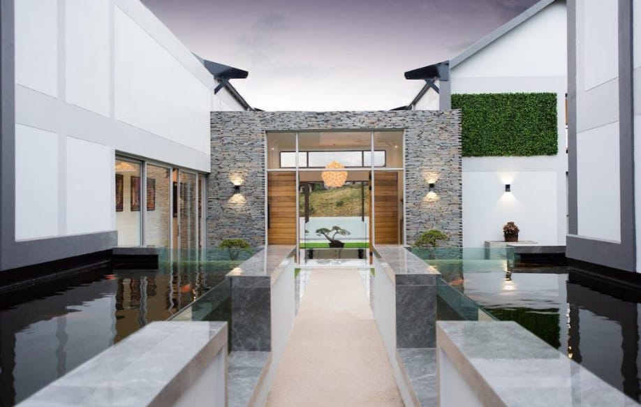 Discover an ultra-modern masterpiece on one of the biggest stands at Zimbali. Inspired by Japanese architecture this home invites you with an inviting Asian-style portico leading you to a central walkway flanked by two expansive Koi ponds, housing some of the rarest and most valuable Koi in the country.
