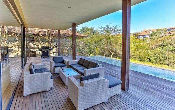 Welcome to your dream home in the prestigious Zimbali Estate, where luxury living meets natural beauty. As you arrive, you are greeted by a stunning water feature at the entrance, setting a tranquil tone for this exquisite property.