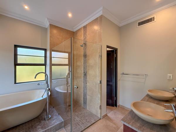 This spacious 3-bedroom, 3.5-bathroom freestanding townhouse is perfectly positioned in a tranquil private lakeside setting within Zimbali Coastal Estate. Featuring a grand double-volume entrance, open-plan living and dining areas, and a modern kitchen with separate scullery and direct garage access, this home is both functional and elegant.