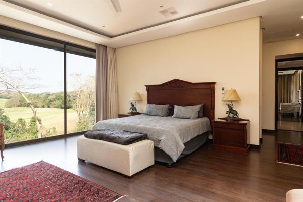This modern, spacious home is a true architectural masterpiece, designed to embrace light, space, and nature. Positioned for privacy and overlooking the 12th green, the residence enjoys uninterrupted golf course views while blending seamlessly into its natural surrounds. Expansive glass and picture windows capture the setting, epitomizing the sought-after Zimbali lifestyle of effortless indoor-outdoor living.