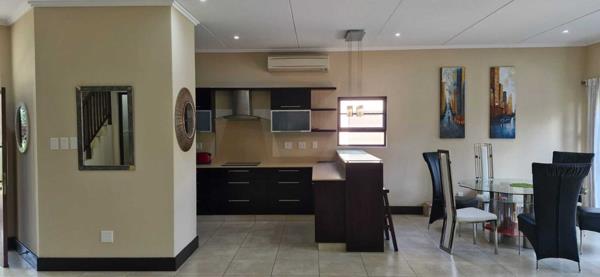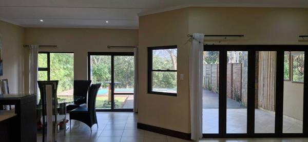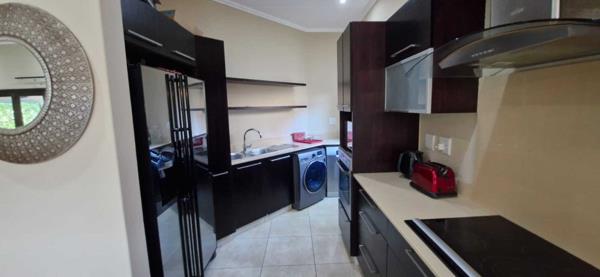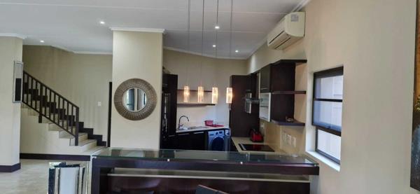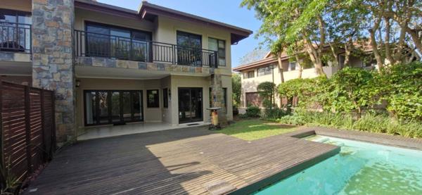 Stylish Zimbali Townhouse on the Fairway Fully Furnished and Move-In Ready!. Nestled within the prestigious Zimbali Estate, this modern semi-detached townhouse offers the perfect blend of comfort, style, and convenience. Featuring 4 spacious bedrooms, all en suite, this home is designed for relaxed coastal living. The open-plan lounge, dining, and kitchen areas flow seamlessly onto an inviting undercover patio, overlooking the pool and manicured garden that borders the lush Zimbali golf course fairway.