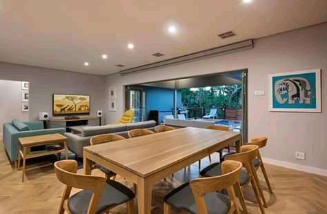The heart of the home is a stunning open-plan kitchen that flows effortlessly into spacious living and dining areas. Designed for seamless indoor-outdoor living, these spaces open onto a beautifully appointed entertainment area featuring a sparkling pool and built-in braai perfect for gatherings with family and friends.