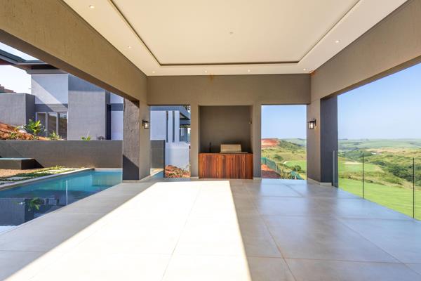 Brand new, luxury family home situated in Zimbali Lakes Resort. Nearing completion. On entrance, this home comprises of an open plan kitchen, living and dining area. This flows onto a large, covered patio, deck and protected swimming pool and boma area. This level provides expansive views of the golf course and dam. Additionally, a guest bedroom with en-suite bathroom, guest toilet and scullery are situated on this level.