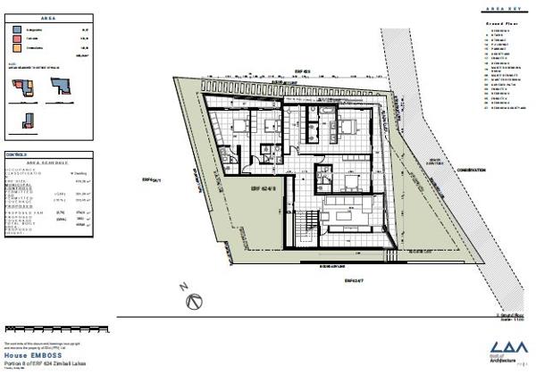To find a secluded sanctuary devoted to relaxation and renewal, ascend to the first floor. With its opulent en suite bathroom and spacious dressing area, the master suite is a haven. Three more luxurious bedrooms, each with a private bathroom, offer family members and visitors comfort and seclusion. A comfortable pyjama lounge provides a laid-back setting for rest, and the covered patio encourages peaceful reflection while offering views of the surroundings. The area is naturally lit by a central courtyard.