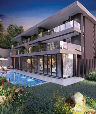 All units offer open plan kitchen/-dining/lounge areas, 2 en-suite bedrooms and covered terraces. Access controlled with 2 undercover parking bays per unit. High-end finishes. Pre-installed solar panels, inverters and batteries offering eco-friendly back-up power. Energy conscious inverter aircon units and low-voltage LED fittings. - Communal facilities including, garden, pool, pool room and laundrette. Basement storage units available for purchase