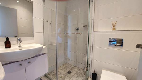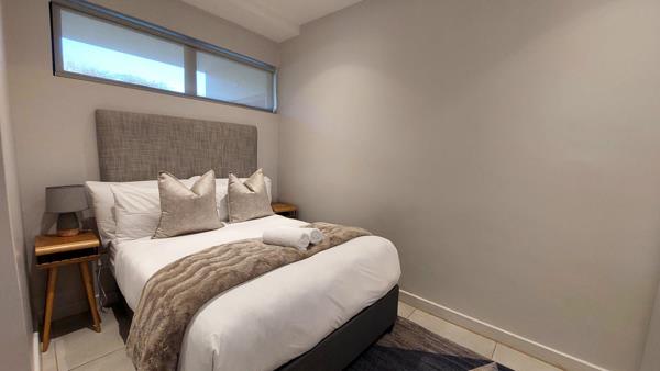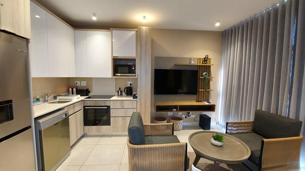 This layout has an open-concept living space designed with contemporary flair and includes an integrated dining and kitchen area. The kitchen is well fitted and equipped with high-end stainless steel appliances, sleek countertops, and ample storage space. The living room is spacious enough to accommodate a well sized lounge suite.