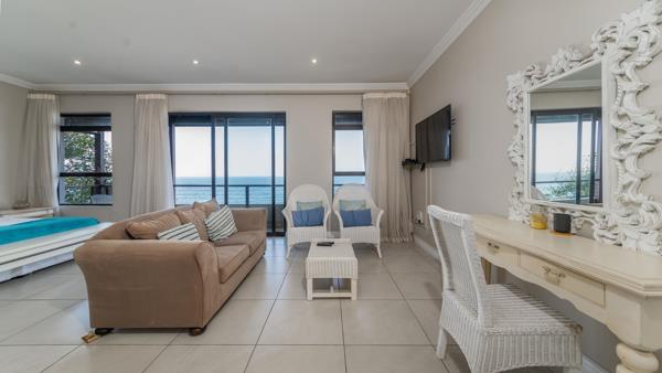 Step into this stunning beachfront apartment and be welcomed by a striking double-volume entrance and uninterrupted sea views that immediately set the tone for relaxed coastal living.