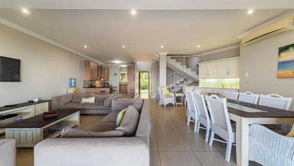 The open-plan living and dining areas are thoughtfully positioned on the ground floor, flowing seamlessly onto a large, covered balcony the perfect setting for al fresco entertaining or simply soaking up the ocean breeze. The sleek, modern kitchen is fully equipped and includes a separate laundry area complete with all appliances for added convenience.