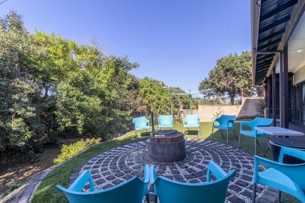 The patio and outdoor spaces are functional extensions of this home and include a fire pit / braai that adds wonderful ambience to evening entertaining. Artificial lawn has also been used in the garden for ease of maintenance here.