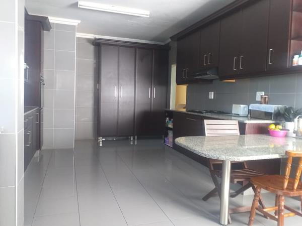 Enjoy a sea breeze in this three bedroom home with built in cupboards, two with lovely en-suite bathrooms, a passage with built in cupboards, and a communal bathroom and toilet. It also has a spacious lounge and dining area, study, tv room, beautiful kitchen and a spacious entertainment area which has down lights and a built in braai area. There is a single garage and the yard is large enough to accommodate many vehicles and more space at the back for kids to play. There is an out building with a big room that has built in cupboards and en-suite, it is a single bedroom with a toilet and shower. The property is fully fenced all around with a remote-control gate, an alarm system, beams and camera system. Blythedale is a developing area and investing in this area at this reasonable price is a fortune, so please call me!