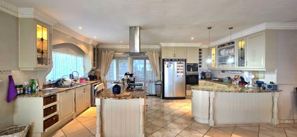 The main bedroom suite is a true retreat, featuring an en-suite bathroom, study, and kitchenette. With private doors opening onto a balcony overlooking the ocean, this space can easily be utilized as a self-contained flatlet. Another bedroom also includes a kitchenette, ideal for guests or extended family.