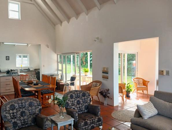 Open plan lounge, dining room and kitchen with a centre island, all of which blend seamlessly and flow outwards towards the sea-facing balcony at the front and covered patio at the back leading to a private garden which is well protected.