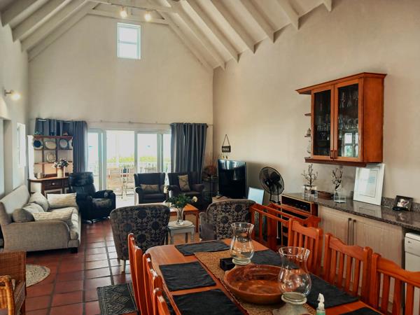 This spacious home features five bedrooms with en-suite bathrooms, ideal for family living or hosting guests in style, large open-plan living area with exposed beam ceiling which enhances this voluminous space.