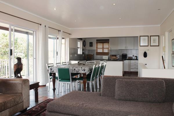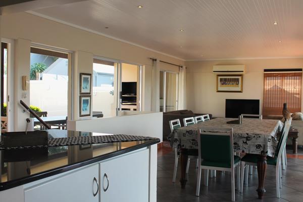 The open plan kitchen, dining and living areas are on the main level, offering a large and comfortable area for both in and outdoor entertaining, and this area also has a large swimming pool and built-in braai under the covered patio.