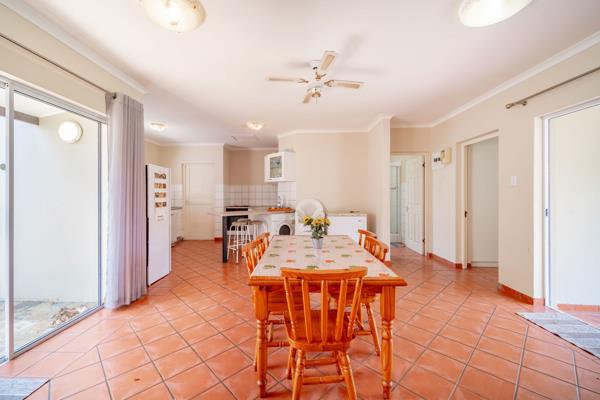 This simple and functional 4 bedroom home has 2 bedrooms and 2 bathrooms, kitchen , open plan lounge and dining room in the main house, then 2 bedrooms with bunkbeds and a bathroom with a shower outside the house for older kids or guests.