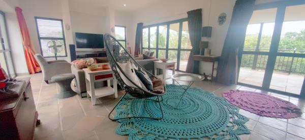 Main House: Open-plan living area flows effortlessly onto a spacious balcony, ideal for relaxed living with a built-in-braai.