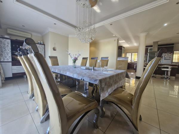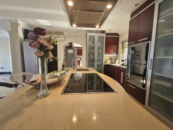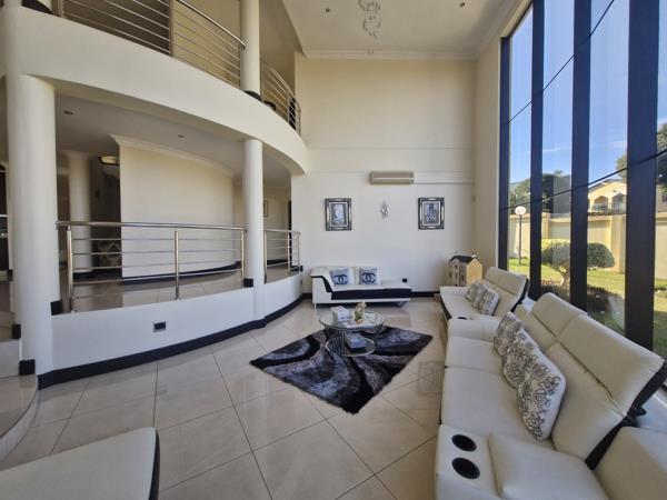 At the heart of the home lies a master chef-style kitchen, fully equipped with high-end finishes, ample counter space, and a massive scullery ideal for entertaining or catering purposes. The home offers expansive living spaces including a formal sunken lounge perfect for hosting guests, and a separate TV room for relaxed family time.