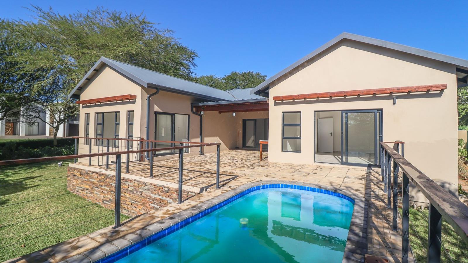 Enjoy unparalleled ease of living in this newly built, single-story home, perfectly designed for complete comfort within a secure estate. This expansive residence features five well-appointed bedrooms, four of which boast their own en-suite bathrooms, offering ultimate privacy and convenience. The fifth bedroom is complemented by a separate bathroom just across the passage, which ingeniously doubles as a guest loo.