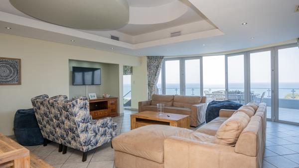 The upper level of this commodious home comprises the main kitchen area which also consists of a generous scullery and a walk-in cold room. There is a dining area, spacious lounge and a built-in bar, all of which enjoy uninterrupted ocean views. Stacking doors lead out to a lovely balcony, from which you can enjoy jaw-dropping, 180 ocean views.