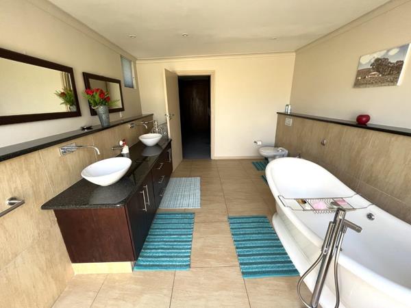 The galley style kitchen is a very decent size with plumbed double door fridge space, a defy ceran hob and extractor fan, double eye level ovens and plenty of cupboard space. Scullery, storeroom, guest bathroom and one en suite bedroom
