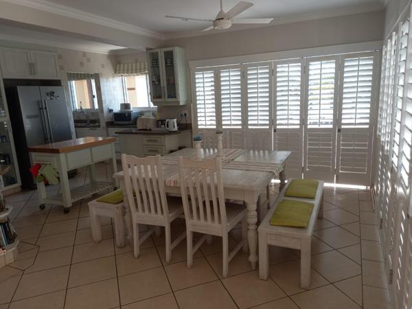 Multiple sets of 3-phase sliding doors lead to an outdoor entertainment area with a generous covered patio, a built-in braai area, and an attractive lap pool. Perfect for enjoying the ocean views and hosting gatherings.