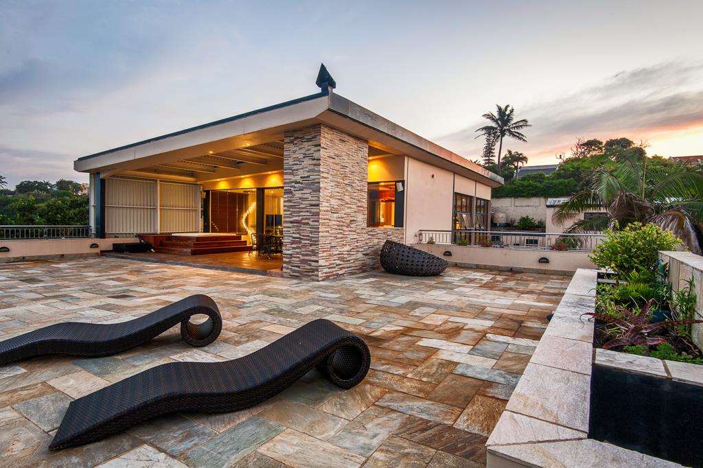 This imposing, architect-designed home has breathtaking views of the Indian Ocean and Zinkwazi Lagoon, from all three storeys.