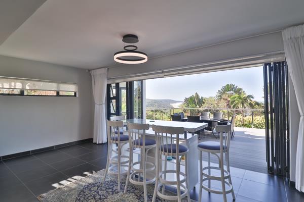 As you step inside, you are greeted by an open-plan living area that exudes sophistication and warmth. The spacious lounge and dining area provide a perfect setting for both relaxation and entertaining. Expansive aluminum, stacking doors open out to a deck that runs the full length of the home, creating a harmonious indoor-outdoor flow. This outdoor oasis features a sunken plunge pool, ideal for enjoying serene sunsets and refreshing dips.