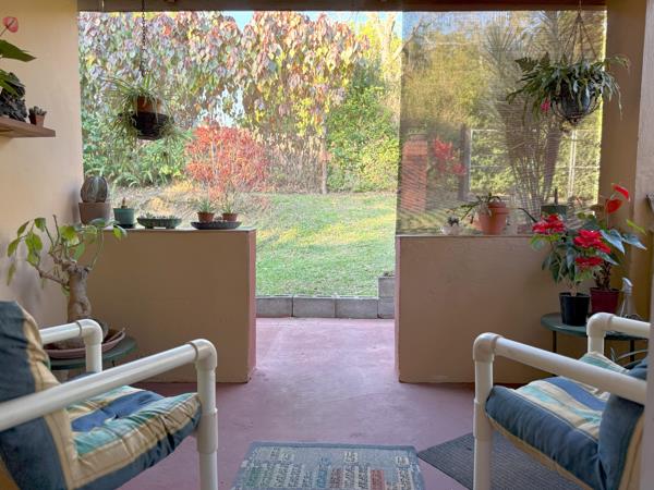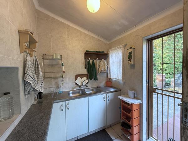 A covered patio at the entrance to the home is an inviting, cozy space overlooking the garden, perfect for enjoying your morning coffee or a quiet evening sundowner. The property is fully fenced, providing a secure and private retreat.