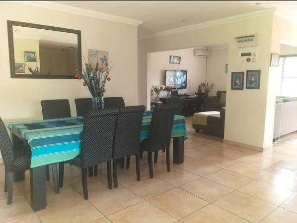 A beautiful and spacious three-bedroom home with lovely built in cupboards, main bedroom with ensuite and closet. Each bedroom has an Aircon, this face brick house has a balcony that leads to two open plan living rooms, and a dining area with an Aircon, a spacious kitchen with built in cupboards and scullery that also has built in cupboards, electric stove, oven and a gas stove. The kitchen also has a small balcony with a washing line. Downstairs has a storeroom with a big solar system that has 7 panels on the roof, double garage and entertainment area. This property has three JoJo tanks that supply the entire house, the yard is very big and has a well maintained and beautiful garden and lawn, the front yard is paved and fully fenced with an electric gate. There are beams all around the property as well as an alarm system. This property is situated in Darnall and is about 1.5km from Zinkwazi beach. This is a well-maintained property that''s worth viewing!!