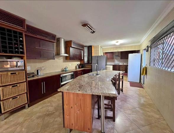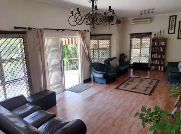 The home features four expansive bedrooms and four well-appointed bathrooms, offering ample space for relaxation and comfort. The lower level boasts a stunning kitchen, a true masterpiece with custom-built saligna cabinetry. Accompanied by a generous scullery and laundry room, this space is perfect for culinary enthusiasts. The kitchen seamlessly connects to the dining area, leading out to a patio with beautiful views of the pool and entertainment area. The sunken lounge also leads to the patio. Additionally, on this level, you will find one of the bedrooms and the main bathroom.