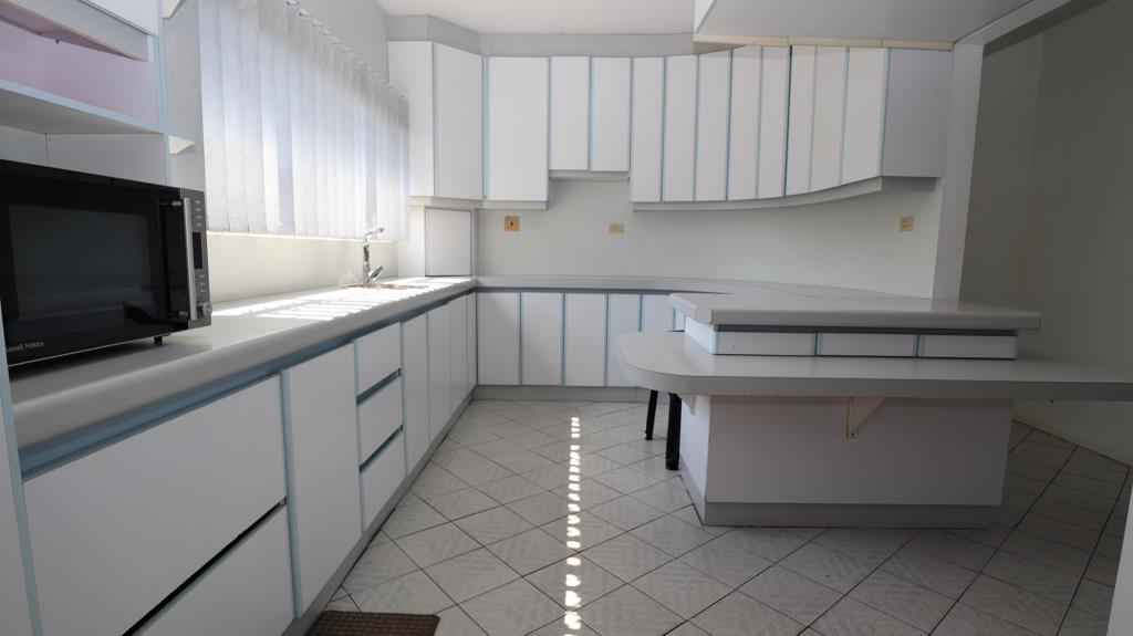 Entering into a large entrance hall, the home flows through to the sunken reception lounge, dining room, and kitchen. Fitted with cupboards and prepped to include a built-in stove, extractor, and eye-level oven. The separate scullery expands the already large kitchen. The dining area is ready to feed large family gatherings.