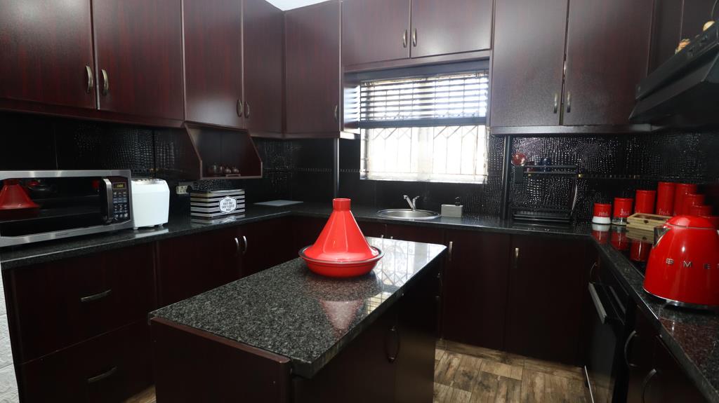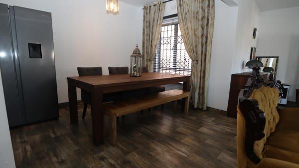 Leading downstairs, with a beautifully carved wooden railing, we have the 4th bedroom and bathroom. All the bedrooms are fitted with ample built-in cupboards, providing generous storage space. The living space is bright and airy, which leads to a well-designed kitchen that has plenty of cupboard space boasting elegant and modern finishes. An inviting entrance hall leads into a sunlit lounge that creates a warm and welcoming ambience. A separate dining area provides the perfect space for large family gatherings. The home is further enhanced with three air-conditioners and three brand-new ceiling fans, ensuring comfort during our hot coastal weather.