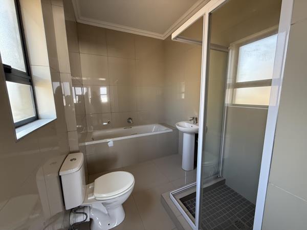 The sleek, contemporary kitchen is fitted with granite countertops, and ample cupboard space, making it a chefs delight. Each of the three bedrooms is generously sized, with built-in wardrobes and large windows that invite natural light and coastal breezes. The main bedroom includes an en-suite bathroom with elegant fittings and a walk-in shower.