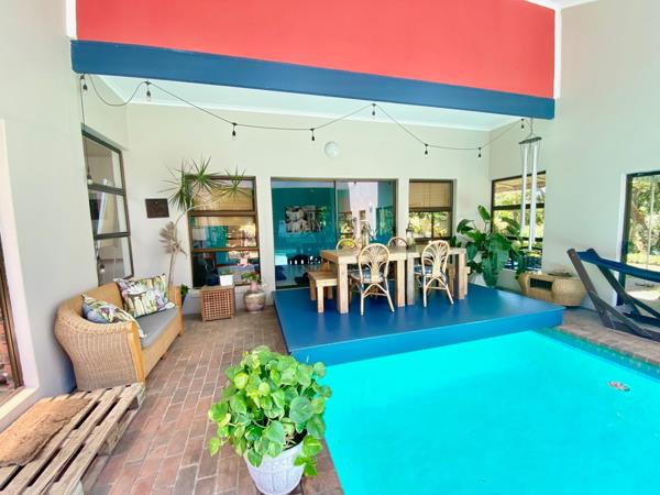The home is surrounded by a lush, tranquil garden filled with indigenous plants, creating a serene connection to nature. It''s a wonderful space to unwind, entertain outdoors, or indulge in homegrown gardening.
