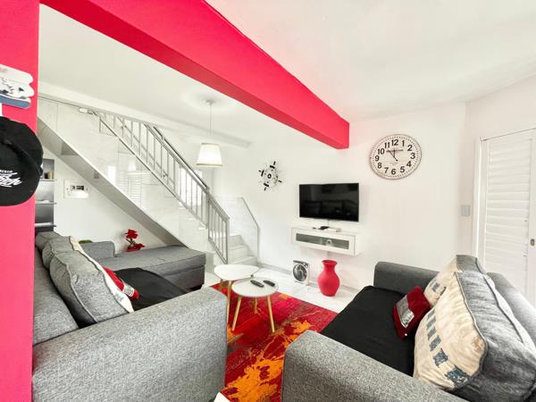 The open plan living area features a sleek kitchen with a gas hob, flowing effortlessly into the dining and lounge spaces, ideal for entertaining or family living. A guest toilet is conveniently located downstairs, and the garage inter leads directly into the home for added ease and security. With a courtyard with a JoJo tank and washing line.