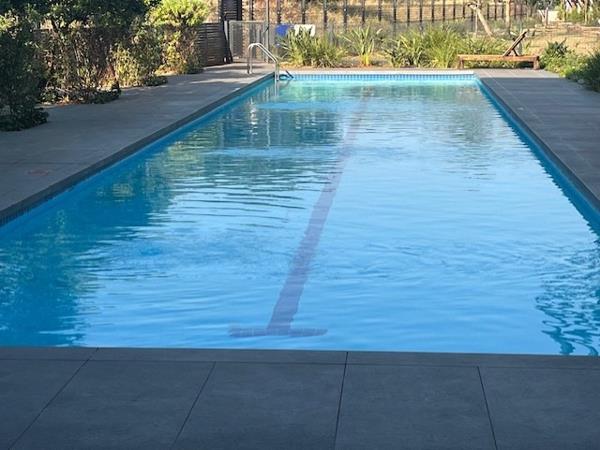 Residents will enjoy an array of premium lifestyle amenities. The complex features a magnificent infinity pool with a spacious, paved deck, ideal for relaxation or lap swimming, surrounded by mature landscaping. For outdoor entertaining, a communal braai area is available. The property includes two dedicated garages, ensuring secure parking. As part of a secure estate, residents benefit from 24-hour security, CCTV, electric fencing, access gates, and an intercom system, providing peace of mind.