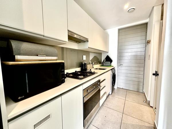 The sleek kitchen offers modern finishes and practical layout, ideal for everyday living. The spacious bedroom is tranquil and tastefully designed, offering built-in storage and easy access to the bathroom.