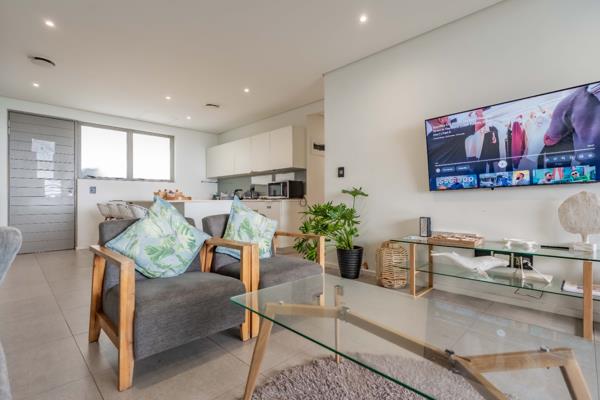 This modern 3-bedroom, 3-bathroom apartment offers an exceptional residential sale opportunity within the prestigious Sibaya Precinct. Spanning 137 square metres, the interior boasts a contemporary open-plan design, seamlessly connecting the lounge and a sleek, bright kitchen. The kitchen is a highlight, featuring a spacious island with seating, integrated appliances, a gas hob, and ample white cabinetry, perfect for both everyday living and entertaining. Large sliding glass doors enhance the flow, inviting natural light and extending the living space outdoors.