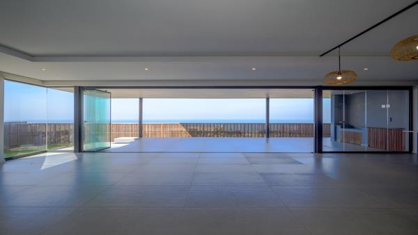 There are three en-suite bedrooms upstairs as you enter, plus a pyjama lounge all leading onto a covered patio. The large glass windows and stack-back doors let in maximum light as well as breathtaking ocean views. The main en-suite bedroom has an open plan bathroom, plenty of cupboards and an adjacent study area.
