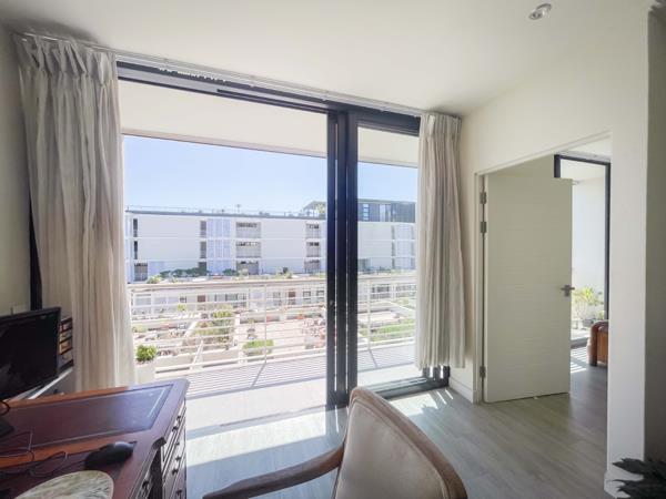 This east-facing unit overlooks a beautifully landscaped courtyard, complete with a hanging